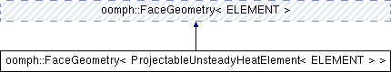 Inheritance diagram for oomph::FaceGeometry< ProjectableUnsteadyHeatElement< ELEMENT > >:Public Member Functions | |