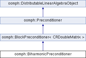 Inheritance diagram for oomph::BiharmonicPreconditioner:Public Member Functions | |