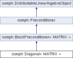 Inheritance diagram for oomph::Diagonal< MATRIX >:Public Member Functions | |