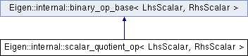 Inheritance diagram for Eigen::internal::scalar_quotient_op< LhsScalar, RhsScalar >:Public Types | |