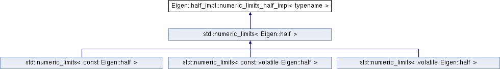 Inheritance diagram for Eigen::half_impl::numeric_limits_half_impl< typename >:Static Public Member Functions | |