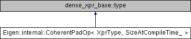 Inheritance diagram for Eigen::internal::CoherentPadOp< XprType, SizeAtCompileTime_ >:Public Types | |