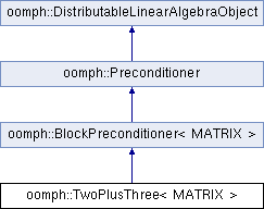 Inheritance diagram for oomph::TwoPlusThree< MATRIX >:Public Member Functions | |
