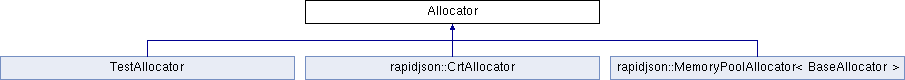 Inheritance diagram for Allocator:Concept for allocating, resizing and freeing memory block.