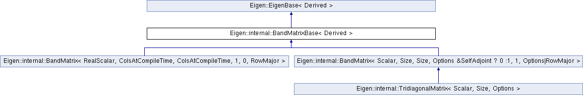 Inheritance diagram for Eigen::internal::BandMatrixBase< Derived >:Classes | |