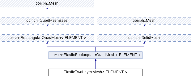 Two layer mesh which employs a pseudo-solid node-update strategy. This class is essentially a wrapper to an ElasticRectangularQuadMesh, with an additional boundary to represent the interface between the two fluid layers. In addition, the mesh paritions the elements into those above and below the interface and relabels boundaries so that we can impose a volume constraint on the lower or upper fluid.