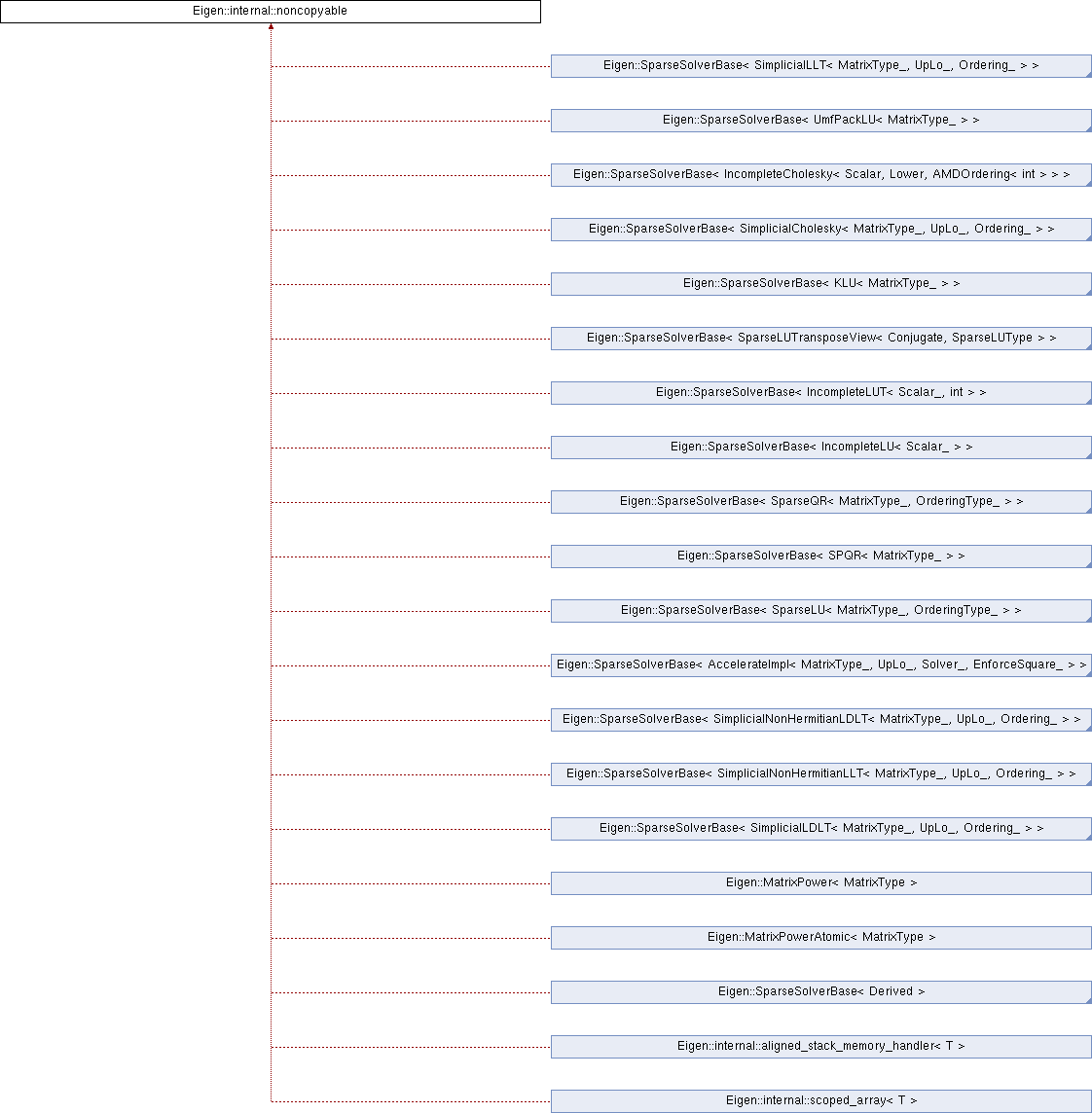 Inheritance diagram for Eigen::internal::noncopyable:Protected Member Functions | |