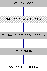 Inheritance diagram for oomph::Nullstream:Public Member Functions | |