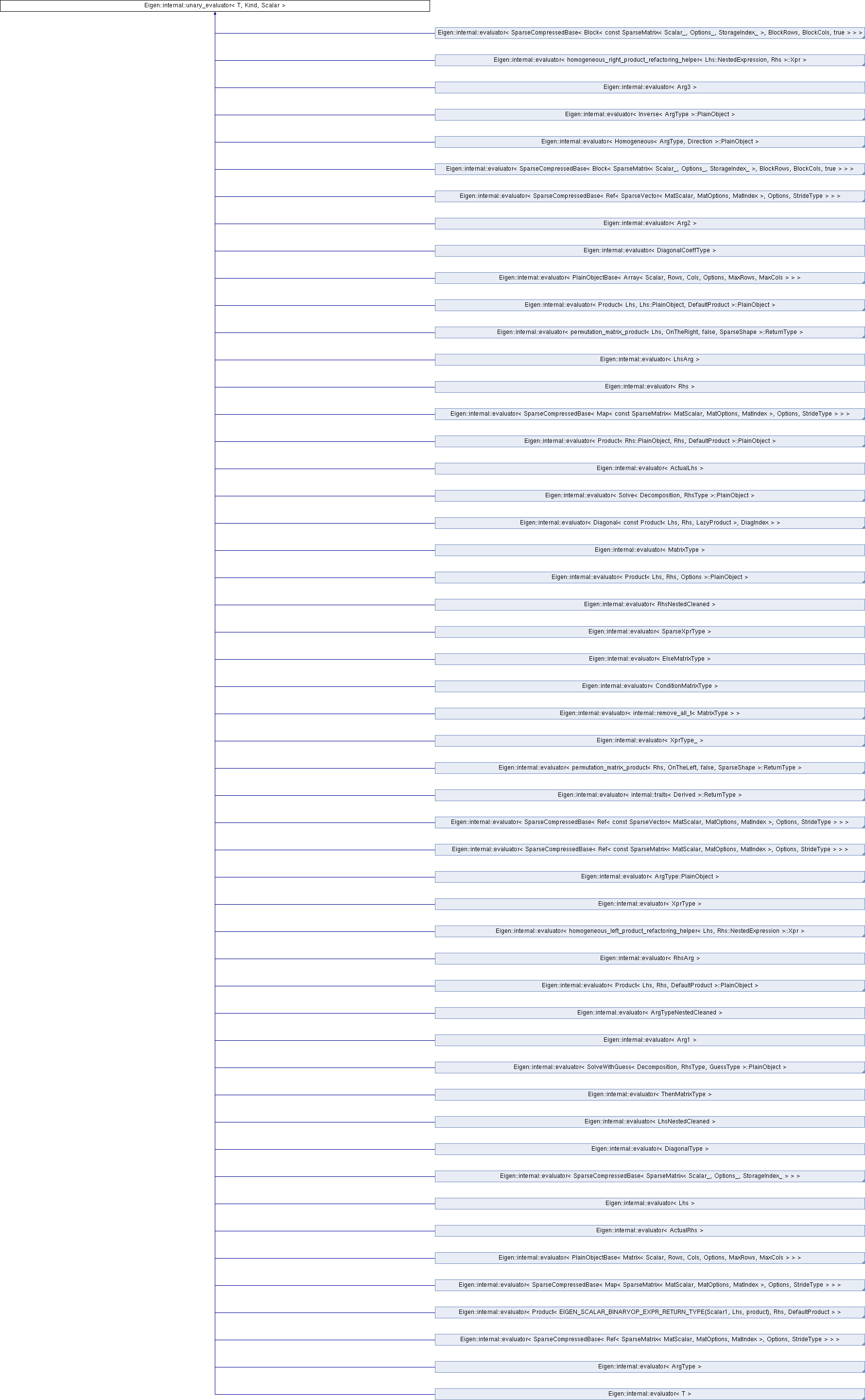 Inheritance diagram for Eigen::internal::unary_evaluator< T, Kind, Scalar >:
