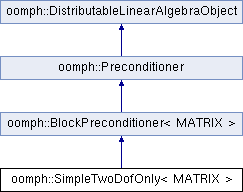 Inheritance diagram for oomph::SimpleTwoDofOnly< MATRIX >:Public Member Functions | |