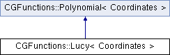 Inheritance diagram for CGFunctions::Lucy< Coordinates >:Public Member Functions | |