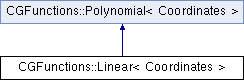 Inheritance diagram for CGFunctions::Linear< Coordinates >:Public Member Functions | |