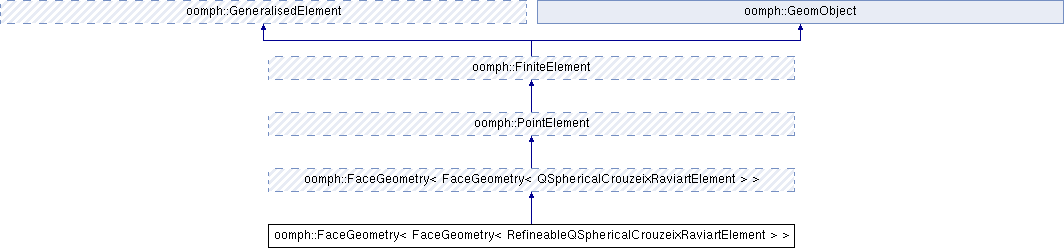 Inheritance diagram for oomph::FaceGeometry< FaceGeometry< RefineableQSphericalCrouzeixRaviartElement > >:Public Member Functions | |
