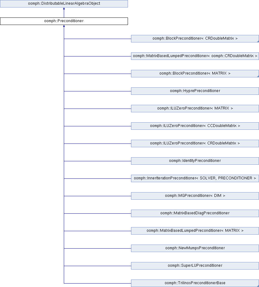 Implemented in oomph::GMRESBlockPreconditioner, oomph::SpaceTimeNavierStokesSubsidiaryPreconditioner, oomph::GMRESBlockPreconditioner, oomph::SpaceTimeNavierStokesSubsidiaryPreconditioner, oomph::HelmholtzMGPreconditioner< DIM >, oomph::NavierStokesSchurComplementPreconditioner, oomph::MatrixBasedLumpedPreconditioner< MATRIX >, oomph::MatrixBasedLumpedPreconditioner< oomph::CRDoubleMatrix >, oomph::TwoPlusThreeUpperTriangularWithTwoLevelSubsidiary< MATRIX >, oomph::TwoPlusOneUpperTriangularPreconditioner< MATRIX >, oomph::TwoPlusThreeUpperTriangularWithOneLevelSubsidiary< MATRIX >, oomph::TwoPlusThreeUpperTriangular< MATRIX >, oomph::UpperTriangular< MATRIX >, oomph::CoarseTwoIntoOne< MATRIX >, oomph::SimpleOneDofOnly< MATRIX >, oomph::SimpleTwoDofOnly< MATRIX >, oomph::Diagonal< MATRIX >, oomph::GMRESBlockPreconditioner, oomph::SpaceTimeNavierStokesSubsidiaryPreconditioner, oomph::GMRESBlockPreconditioner, oomph::SpaceTimeNavierStokesSubsidiaryPreconditioner, oomph::HelmholtzMGPreconditioner< DIM >, oomph::NavierStokesSchurComplementPreconditioner, oomph::MatrixBasedLumpedPreconditioner< MATRIX >, oomph::MatrixBasedLumpedPreconditioner< oomph::CRDoubleMatrix >, oomph::TwoPlusThreeUpperTriangularWithTwoLevelSubsidiary< MATRIX >, oomph::TwoPlusOneUpperTriangularPreconditioner< MATRIX >, oomph::TwoPlusThreeUpperTriangularWithOneLevelSubsidiary< MATRIX >, oomph::TwoPlusThreeUpperTriangular< MATRIX >, oomph::UpperTriangular< MATRIX >, oomph::CoarseTwoIntoOne< MATRIX >, oomph::SimpleOneDofOnly< MATRIX >, oomph::SimpleTwoDofOnly< MATRIX >, oomph::Diagonal< MATRIX >, oomph::GMRESBlockPreconditioner, oomph::SpaceTimeNavierStokesSubsidiaryPreconditioner, oomph::GMRESBlockPreconditioner, oomph::SpaceTimeNavierStokesSubsidiaryPreconditioner, oomph::HelmholtzMGPreconditioner< DIM >, oomph::NavierStokesSchurComplementPreconditioner, oomph::MatrixBasedLumpedPreconditioner< MATRIX >, oomph::MatrixBasedLumpedPreconditioner< oomph::CRDoubleMatrix >, oomph::TwoPlusThreeUpperTriangularWithTwoLevelSubsidiary< MATRIX >, oomph::TwoPlusOneUpperTriangularPreconditioner< MATRIX >, oomph::TwoPlusThreeUpperTriangularWithOneLevelSubsidiary< MATRIX >, oomph::TwoPlusThreeUpperTriangular< MATRIX >, oomph::UpperTriangular< MATRIX >, oomph::CoarseTwoIntoOne< MATRIX >, oomph::SimpleOneDofOnly< MATRIX >, oomph::SimpleTwoDofOnly< MATRIX >, oomph::Diagonal< MATRIX >, oomph::GMRESBlockPreconditioner, oomph::SpaceTimeNavierStokesSubsidiaryPreconditioner, oomph::GMRESBlockPreconditioner, oomph::SpaceTimeNavierStokesSubsidiaryPreconditioner, oomph::BandedBlockTriangularPreconditioner< MATRIX >, oomph::ExactDGPBlockPreconditioner< MATRIX >, oomph::PressureBasedSolidExactPreconditioner< MATRIX >, oomph::PressureBasedSolidLSCPreconditioner, oomph::HelmholtzMGPreconditioner< DIM >, oomph::HelmholtzGMRESMG< MATRIX >, oomph::NavierStokesExactPreconditioner< MATRIX >, oomph::NavierStokesSchurComplementPreconditioner, oomph::LagrangeEnforcedFlowPreconditioner, oomph::PseudoElasticPreconditionerScalingHelperOld, oomph::PseudoElasticPreconditionerSubsidiaryBlockPreconditionerOld, oomph::PseudoElasticPreconditionerSubsidiaryPreconditionerOld, oomph::PseudoElasticPreconditionerOld, oomph::PseudoElasticPreconditioner, oomph::PseudoElasticFSIPreconditioner, oomph::SimpleFSIPreconditioner< MATRIX >, oomph::FSIPreconditioner, oomph::TrilinosPreconditionerBase, oomph::SuperLUPreconditioner, oomph::IdentityPreconditioner, oomph::NewMumpsPreconditioner, oomph::HyprePreconditioner, oomph::MGPreconditioner< DIM >, oomph::InnerIterationPreconditioner< SOLVER, PRECONDITIONER >, oomph::ILUZeroPreconditioner< CRDoubleMatrix >, oomph::ILUZeroPreconditioner< CCDoubleMatrix >, oomph::MatrixBasedLumpedPreconditioner< MATRIX >, oomph::MatrixBasedLumpedPreconditioner< oomph::CRDoubleMatrix >, oomph::MatrixBasedDiagPreconditioner, oomph::MatrixBasedLumpedPreconditioner< MATRIX >, oomph::MatrixBasedLumpedPreconditioner< oomph::CRDoubleMatrix >, oomph::MatrixBasedLumpedPreconditioner< MATRIX >, oomph::MatrixBasedLumpedPreconditioner< oomph::CRDoubleMatrix >, oomph::DummyBlockPreconditioner< MATRIX >, oomph::ExactBlockPreconditioner< MATRIX >, oomph::BlockTriangularPreconditioner< MATRIX >, oomph::BlockDiagonalPreconditioner< MATRIX >, oomph::InexactSubBiharmonicPreconditioner, oomph::ExactSubBiharmonicPreconditioner, oomph::BiharmonicPreconditioner, BoussinesqPreconditioner, SimpleFSIPreconditioner< MATRIX >, oomph::SimpleBlockDiagonalPreconditioner< MATRIX >, oomph::SimpleBlockDiagonalPreconditioner< CRDoubleMatrix >, oomph::OnePlusFourWithTwoCoarse< MATRIX >, oomph::CoarseTwoPlusTwoPlusOne< MATRIX >, oomph::TwoPlusThreeUpperTriangularWithReplace< MATRIX >, oomph::TwoPlusThreeUpperTriangularWithTwoLevelSubsidiary< MATRIX >, oomph::TwoPlusOneUpperTriangularPreconditioner< MATRIX >, oomph::TwoPlusThreeUpperTriangularWithOneLevelSubsidiary< MATRIX >, oomph::TwoPlusThreeUpperTriangular< MATRIX >, oomph::TwoPlusThree< MATRIX >, oomph::UpperTriangular< MATRIX >, oomph::CoarseTwoIntoOne< MATRIX >, oomph::SimpleOneDofOnly< MATRIX >, oomph::SimpleTwoDofOnly< MATRIX >, oomph::Diagonal< MATRIX >, and SimpleLSCPreconditioner.