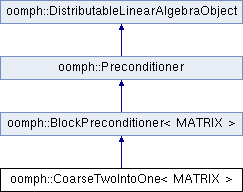 Inheritance diagram for oomph::CoarseTwoIntoOne< MATRIX >:Public Member Functions | |