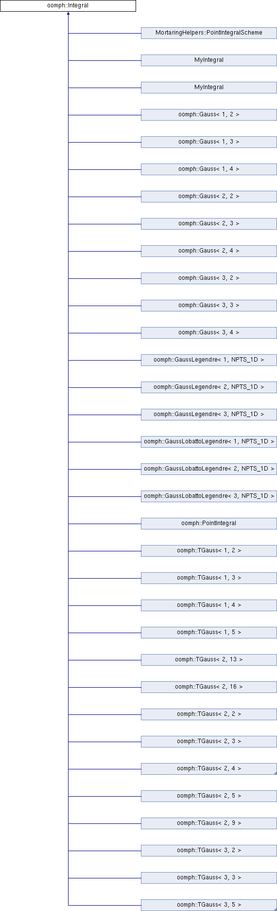Inheritance diagram for oomph::Integral:Public Member Functions | |
