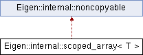 Inheritance diagram for Eigen::internal::scoped_array< T >:Public Member Functions | |