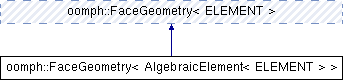 Inheritance diagram for oomph::FaceGeometry< AlgebraicElement< ELEMENT > >:Public Member Functions | |