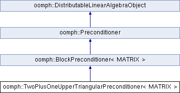Inheritance diagram for oomph::TwoPlusOneUpperTriangularPreconditioner< MATRIX >:Public Member Functions | |